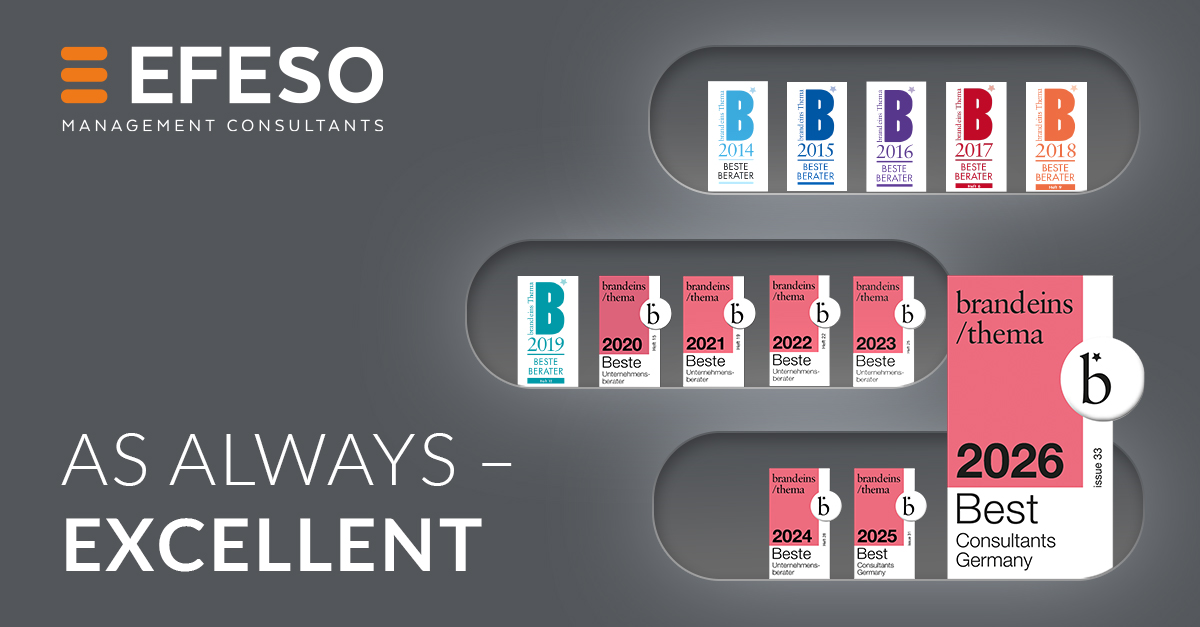 For the thirteenth time in a row, EFESO Management Consultants has been recognized by brand eins and Statista in the renowned industry study “Best Consultants” (formerly: ROI-EFESO). The respondents confirmed the top position already achieved in previous years in the “Machinery & Plant Construction” industry segment of the ranking.