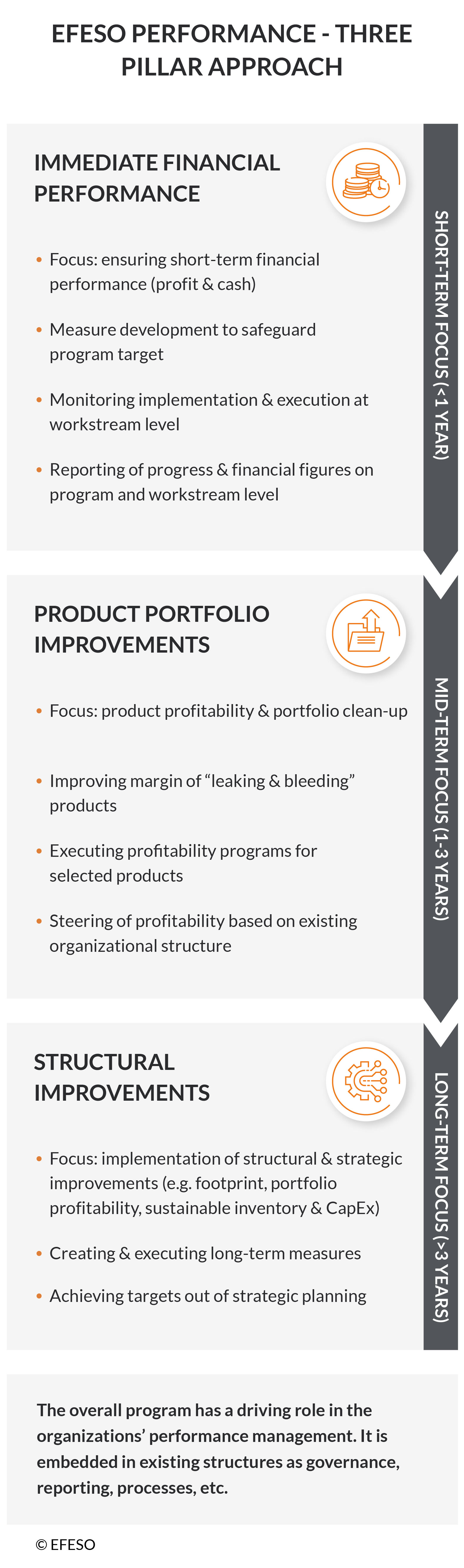 - Use of strategic levers per work package plus implementation of strategic improvements in separate additional programs.